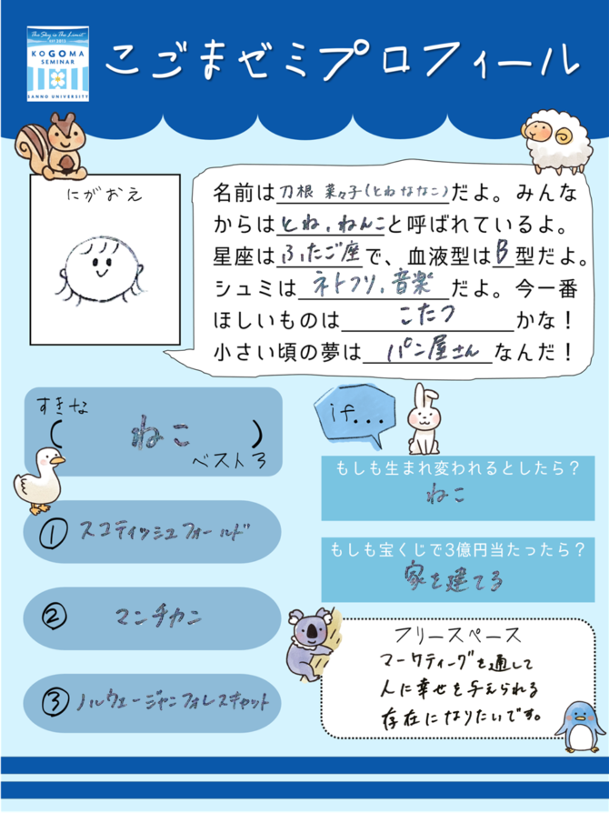 小々馬ゼミメンバーの「プロフィール帳」第14回は7期のとねちゃんです!